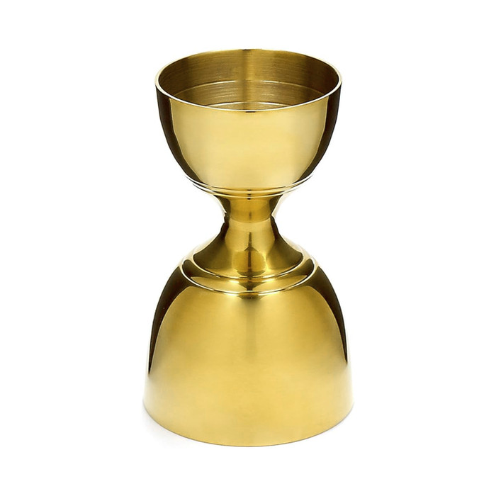 Our Gold-Plated Banded Vintage Jigger brings timeless style to any home bar. Inspired by classic Prohibition Era bar tools, it features an elegant hourglass design accented with distinctive banded lines and a brilliant gold-plated finish. One side measures 1 oz and the other 2 oz, with interior half-ounce markings to ensure precise pours when crafting cocktails. Made from premium food-grade 304 stainless steel, this bar tool combines durability with a striking, upscale look. Each jigger is engraved with your logo and packaged in a custom-designed gift box, making it a standout item for distillery gift shops and branded promotions.