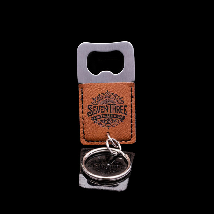 Our Ultrahyde Square Cognac Keychain Bottle Opener is a stylish and practical accessory your customers will use every day. Featuring a durable metal bottle opener wrapped in Cognac Ultrahyde, this piece offers the look and feel of leather while maintaining long-lasting durability. The smooth Ultrahyde surface is engraved with your custom logo, creating a clean, professional branded look. Compact and easy to carry on a key ring, it keeps your brand close at hand wherever your customers go. Both functional and giftable, this keychain bottle opener makes a great addition to distillery gift shops, events, and branded promotions.